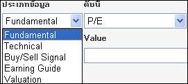ท่านสามารถกำหนดเงื่อนไขในการค้นได้ตามประเภทและดัชนีที่ต้องการ เช่น