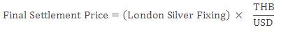 The price will be based on the London Silver Fixing Price, adjusted for currency from USD to THB. The calculation will be made using the below formula