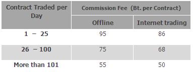 - If an investor trades SVQ11 20 contracts per day via Offline trading, the commission to be paid = 86 x 20= Bt1,720 *