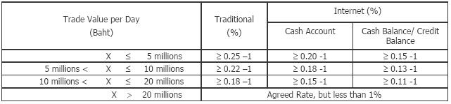 *Excluding Trading Fee 0.005%, Clearing Fee 0.001%, and Regulatory Fee 0.001% of trade value per day.