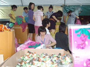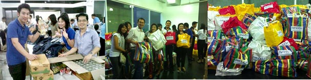 | โครงการ "บรรจุสิ่งของช่วยผู้ประสบภัยภาคใต้" (เม.ย. 54) พนักงานร่วมกันไปช่วยบรรจุสิ่งของช่วยผู้ประสบภัยน้ำท่วมภาคใต้ที่โรงแรมดุสิตธานี