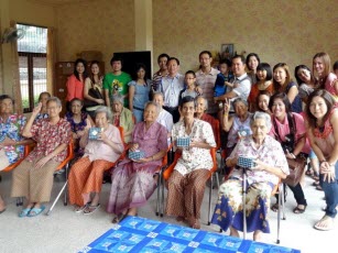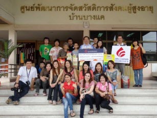 | โครงการ "ปันน้ำใจ ส่งมอบความสุขและรอยยิ้มสู่บ้านบางแค" (ก.ย. 54)-พนักงานร่วมบริจาคเงินและสิ่งของ พร้อมกับจัดกิจกรรม และมอบสิ่งของเครื่องใช้และอาหารให้แก่ผู้สูงอายุที่บ้านบางแค