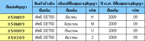ตัวอย่างอักษรย่อสำหรับสัญญา SET50 Index Futures แบบ Single Order